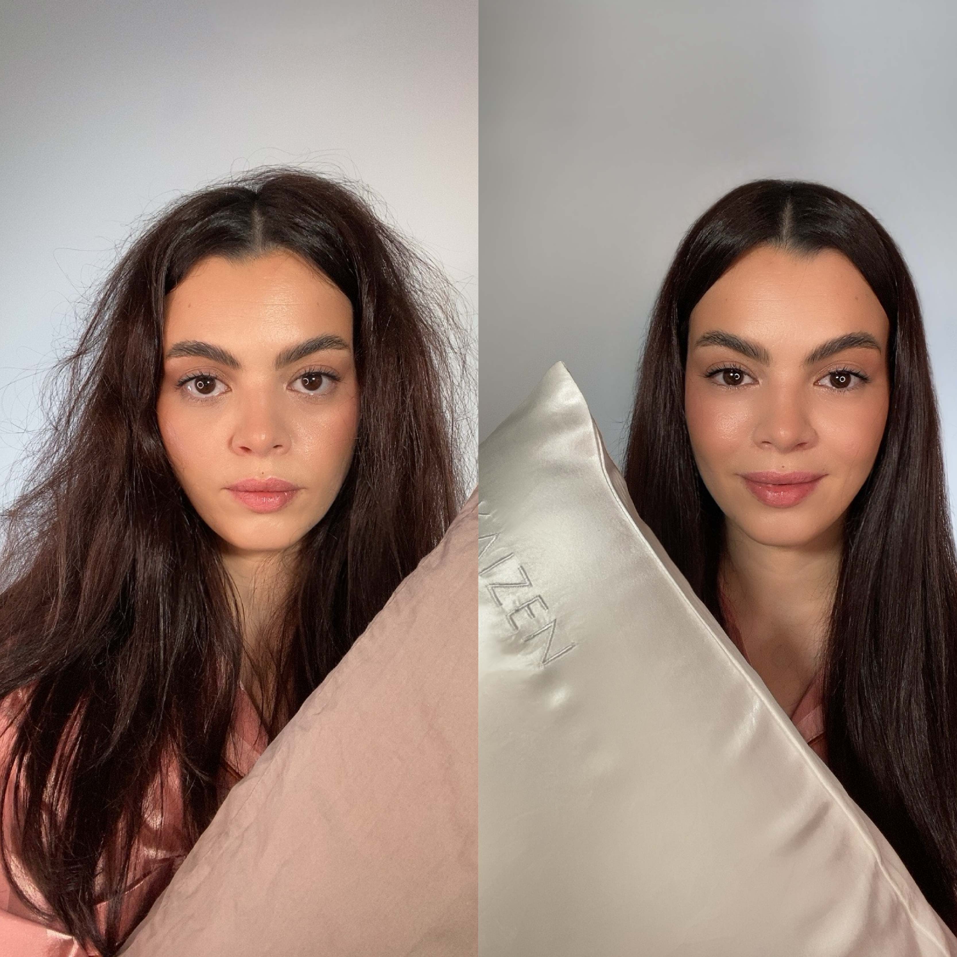 Kaizen transforms your nights and elevates your beauty; every night is an investment in your care. It's exclusive 100% antibacterial mulberry silk . Infused with silver to eliminate 99.7% of acne- and blemish-causing bacteria.